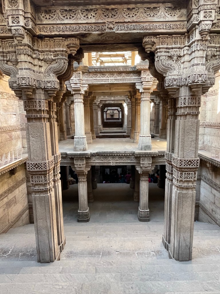 One such well is the Adalaj Step well. It is so beautiful and intricately carved that I wanted a photo with the well as my backdrop. π€£