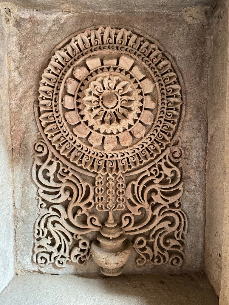 This looks like they have carved it in wood. The intricate craftsmanship is very impressive. That said, I feel itβs carved on a soft stone as most of the carvings have worn out with time.
