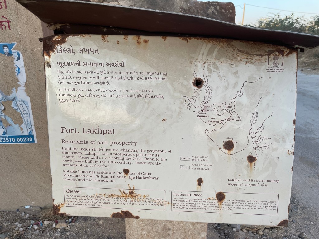 The Sindhu river used to join the sea at Lakhpat. So it was an ideal place for building a port and a good trading location. The fort was built in 1801 and in 1819 (just 18 years later) and earthquake hit Lakhpat. The fort stayed intact but the Sindhu river changed it course. Post that, this place was no more used as a port and lost all its trade almost immediately.
