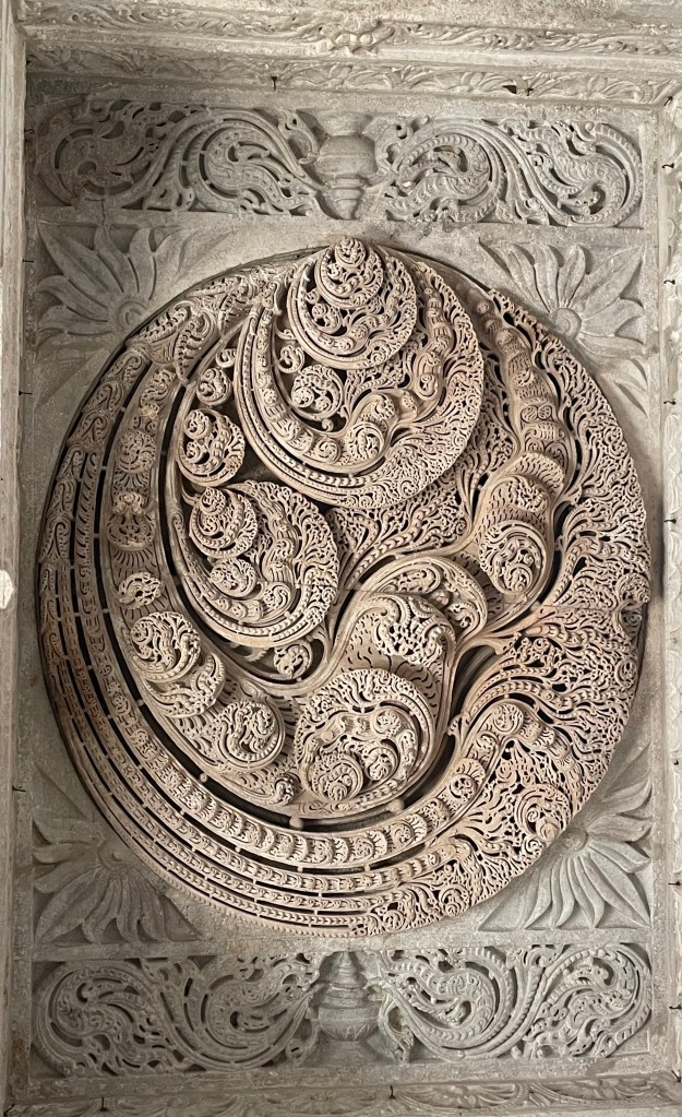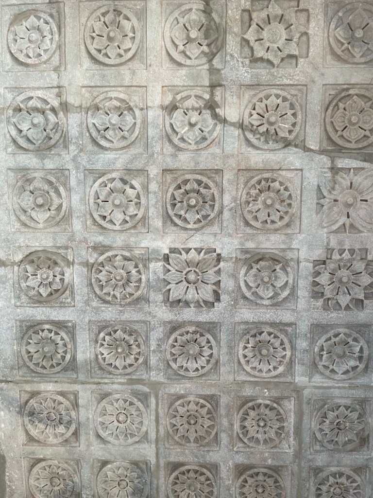 What you are seeing in the image above is not some crochet work. It’s carving on stone. This is what you see on the ceiling of the temple as soon as you enter. The intricate carving in marble is just mind blowing. It looks like a recursive pattern woven around each other. Zoom in to see better.