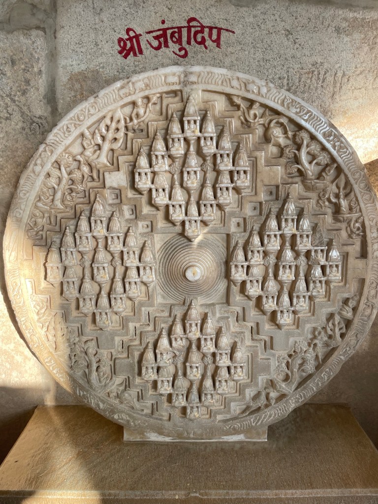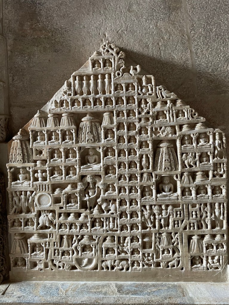 Palitana is a place in Gujarat which is sacred to Jains. It is said to be the place where the first Thirtankara Adinath meditated. It is a hill and has around 900 temples. In the above sculpture, on the top you see two people sitting below a tree and meditating. That is Adinath. The remaining is all the other Thirtankaras. This is carved from a single piece of marble.