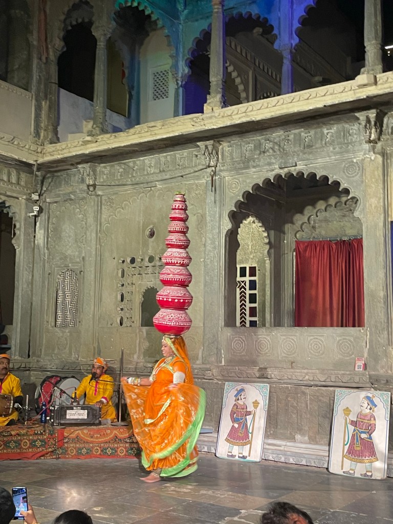 The last one was Bhavai dance which is a dance with many pots on the head. It is said that since people used to travel long distances in getting water on their heads, a dance form evolved from there. It was fantastic.