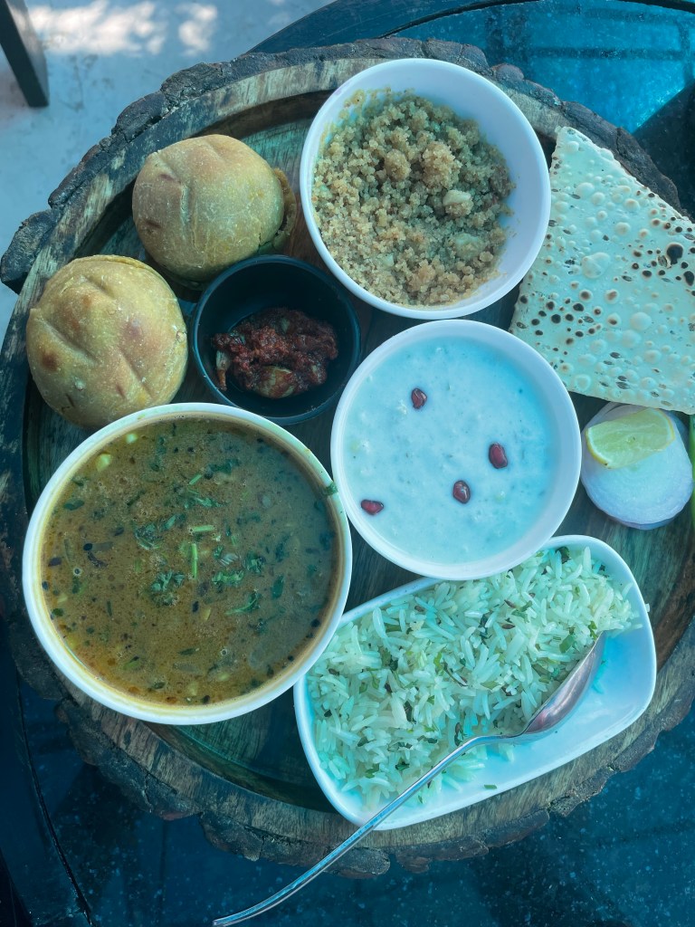 The Gujaratis know to make Thalis. No one is contesting that. But the Rajasthani thali is equally amazing. A lot of side dishes are made from flour than vegetables. Eg. Papad ki sabzi, Sev Tamatar, Gatte ki Sabzi and so on. I also got to taste the recent fad Ker Sangri. This combined with some Bajra roti is a perfect lunch to have.
