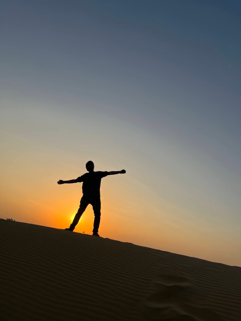 Once we have dunes and the sun setting behind it, silhouette photographs are mandatory. We did the same. And yes anyone can be Shahrukh Khan when it comes in a silhouette.