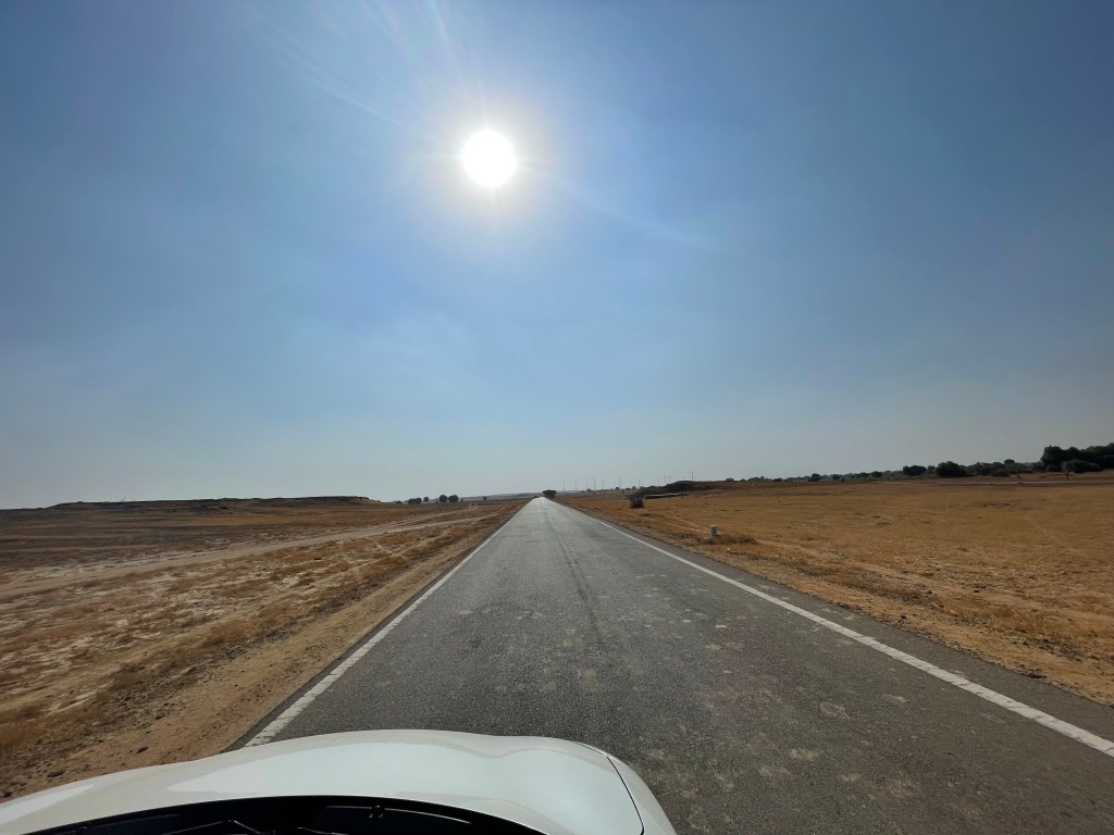 While I was driving to the sand dunes, I found the terrain to be so different. It was a road with desert on both sides. This was not the white desert like the one in Gujarat but a pure sandy desert. It was just sand and shrubs all over with little or no trees.
