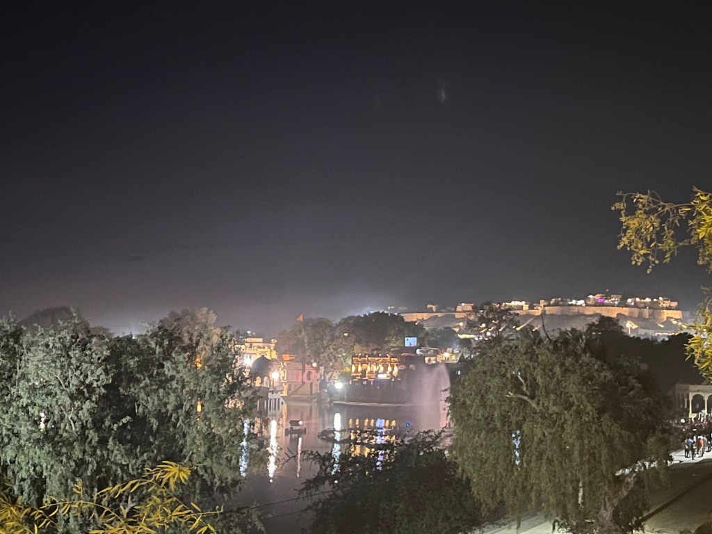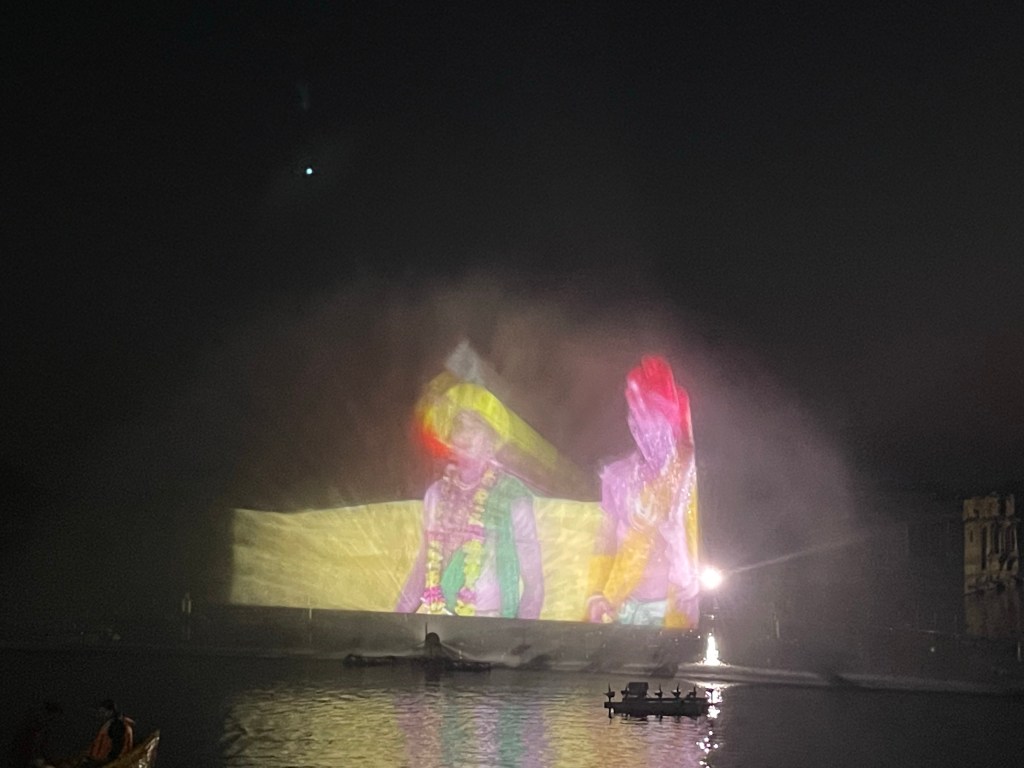 In the evening they have a light and sound show. While the usual light and sound shows have fountains with different coloured lights, dancing to music, this has something extra too. Fine water was sprayed to create a vertical screen of water and a video was projected on it. They played the history of Jaisalmer narrated in ultra Shudh Hindi. Even Hindi speaking people won’t know the meaning of certain words used. All said it was a nice idea.