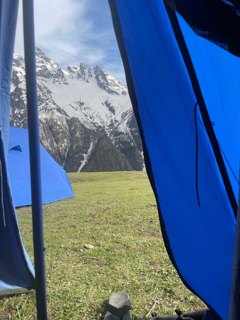 All of a sudden, there were no trees. We were told we have crossed the tree line (an altitude above which trees don’t grow). It was so sudden. After the tree line, there appeared green pastures as long as your eye can see. On the pasture, facing the snow capped mountains was our campsite.