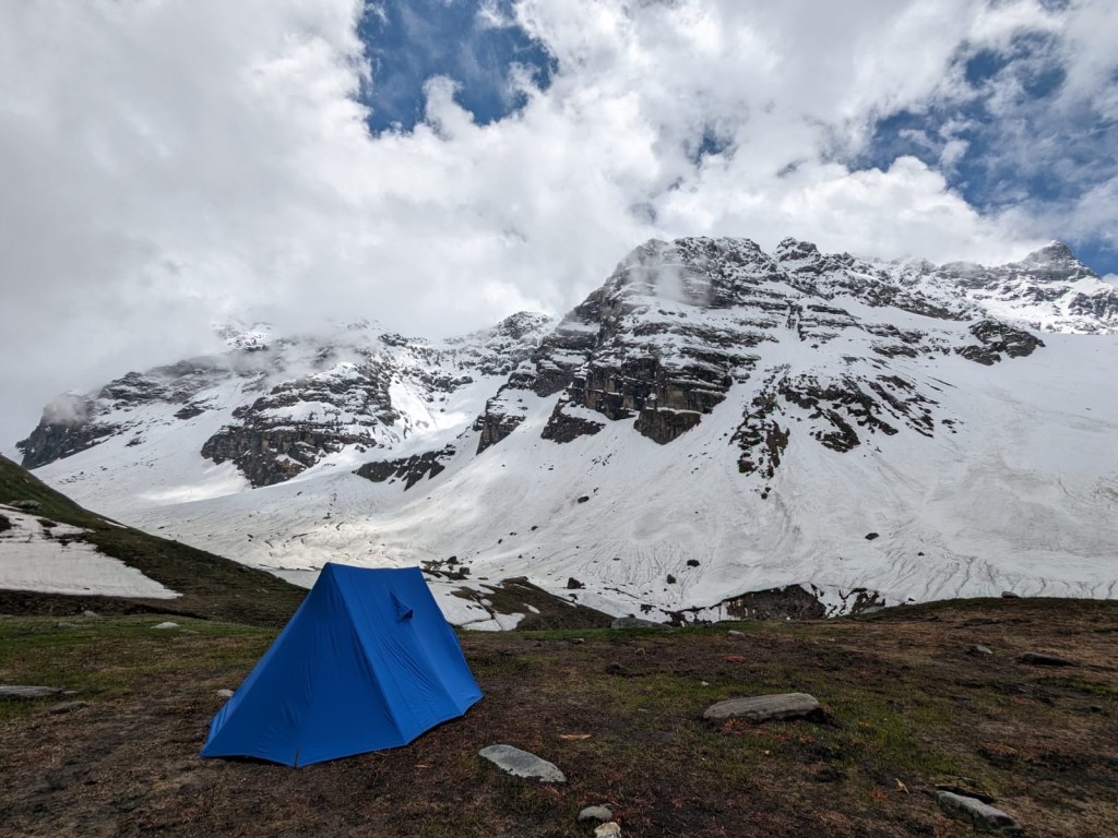 It started raining quite heavily that evening but this day we were not so scared as we had experienced it before. Some water had entered some of our tents, the land below the tents had been washed away creating more uneven surfaces to sleep on. But, when you are trekking in the Himalayas, what else can you expect?