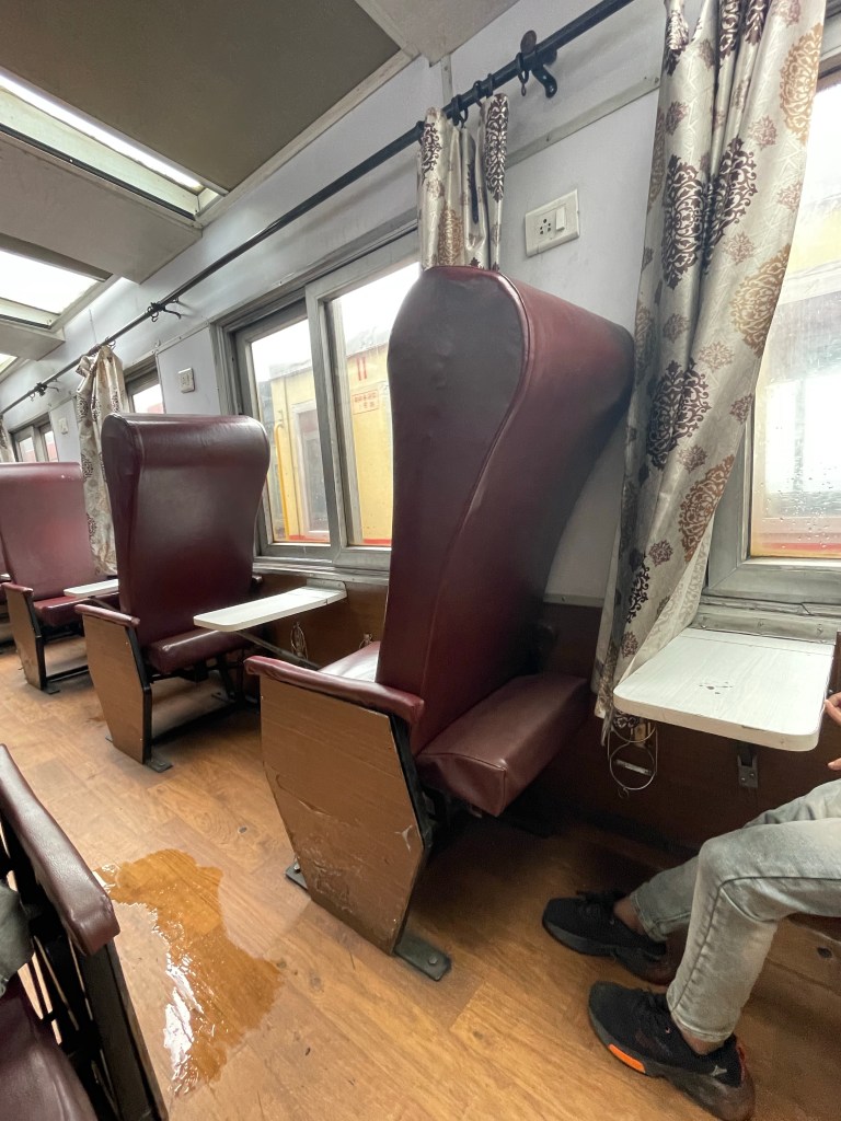 We boarded the train. The train did not have any centralised air conditioning. It has normal split ACs. It also had a board saying, “AC not working”. It had seats with big cushions. However a single row only had 3 seats and there were 5 rows in a coach. So 15 seats per coach. The train had 6 coaches. So a total of 90 passengers could travel by it.