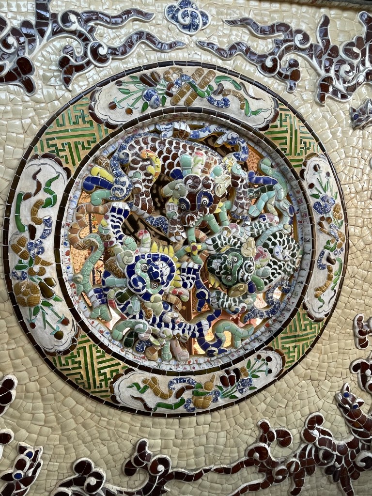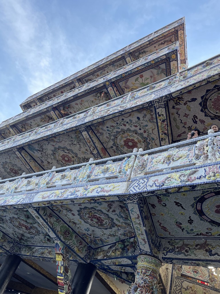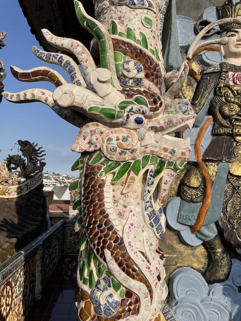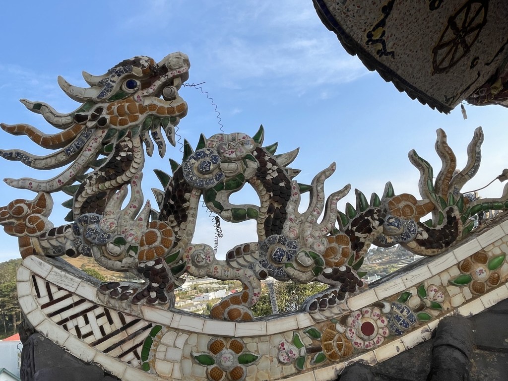 We then went to another Buddhist temple. It was called the Linh Pagoda. This place was built in 1950s and the interesting fact is that the primary materials used to erect it are fragments of glass, porcelain and pottery. You can see the entire structure having made from broken porcelain pieces stuck together to form a mosaic.