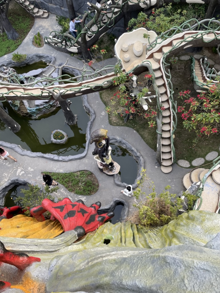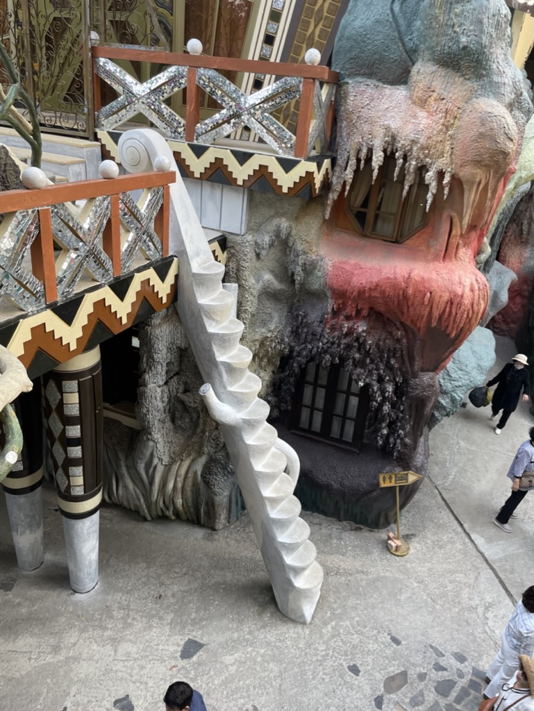 The place has random walking paths and stairs. Getting from one place to another is almost impossible as the path is extremely convoluted. Its like a huge maze and there is no guarantee that you will be able to find your way through it. The stairs and passages are extremely small and narrow and the railings are also randomly shaped like tree wines.
