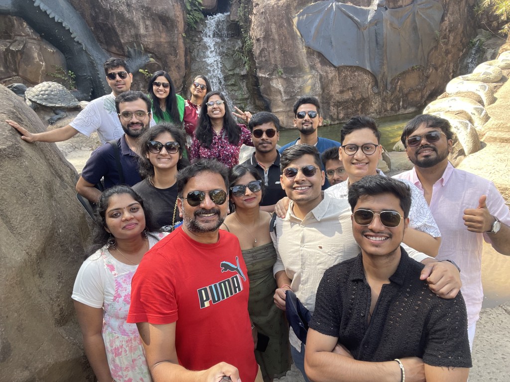It was more like a college outing where everyone is travelling together to the same places. It was fun I must say.