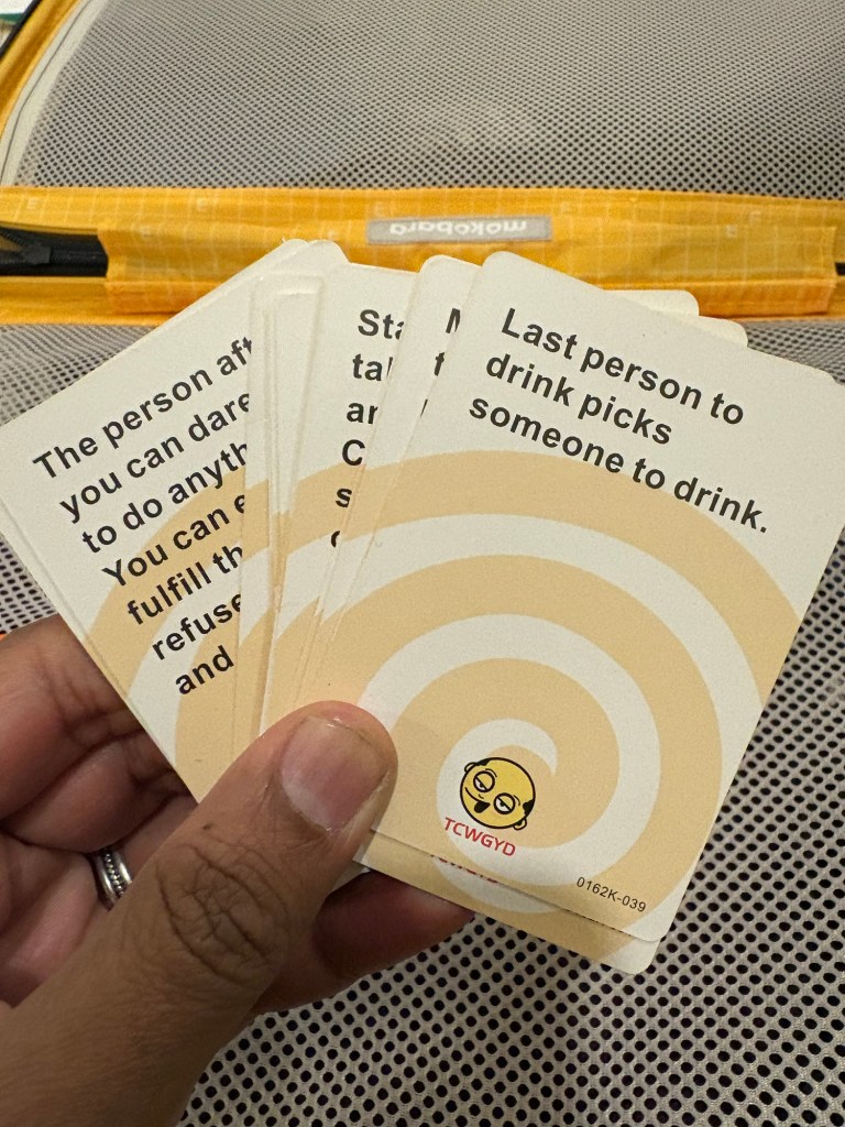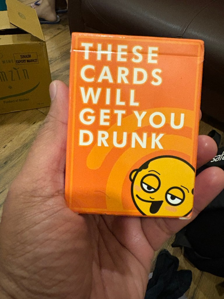 We up the game a bit by playing some card games. These are games made for the non-sober to make them further non-sober. We have some good gaming time. We want to make up for all the losses in the last 3 days. It’s a steep ask from Zumzin. But Zumzin clears it with ease. Things (including the head) get lighter and the trip suddenly becomes pleasurable.