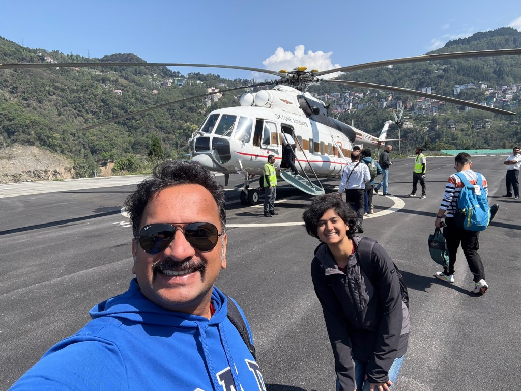 It’s 6 am. A bright and sunny day. We’ve booked a helicopter from Gangtok to Bagdogra. But we’re unsure if it will take off or not—it heavily depends on the weather. Sikkim weather is highly unpredictable, and helicopter cancellations are quite common.