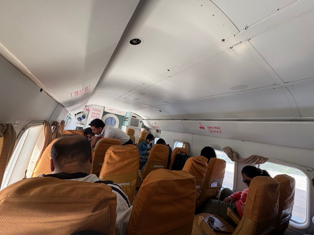 It’s a small helicopter with only around 20 seats, half of which are empty. From the inside, it looks like a small flight. We all take window seats.