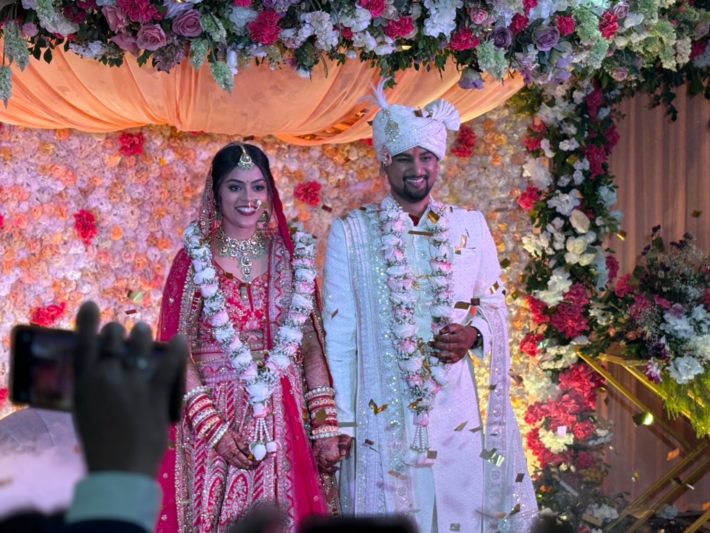 After a photo session within our group, some long conversations, and a lot of waiting, we witness the cinematic entry of the bride and groom. The groom walks in with apsara-like women dancing around him, and the bride enters with smoke effects—like she’s descending straight from heaven. It’s a fun watch for sure.